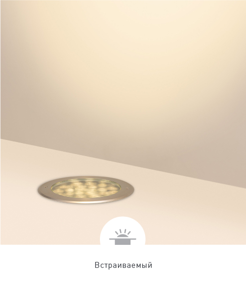 Основной корпус светильника выполнен из алюминия методом литья под давлением, а крышка — из нержавеющей стали. Это делает модель надежной и устойчивой к коррозии.