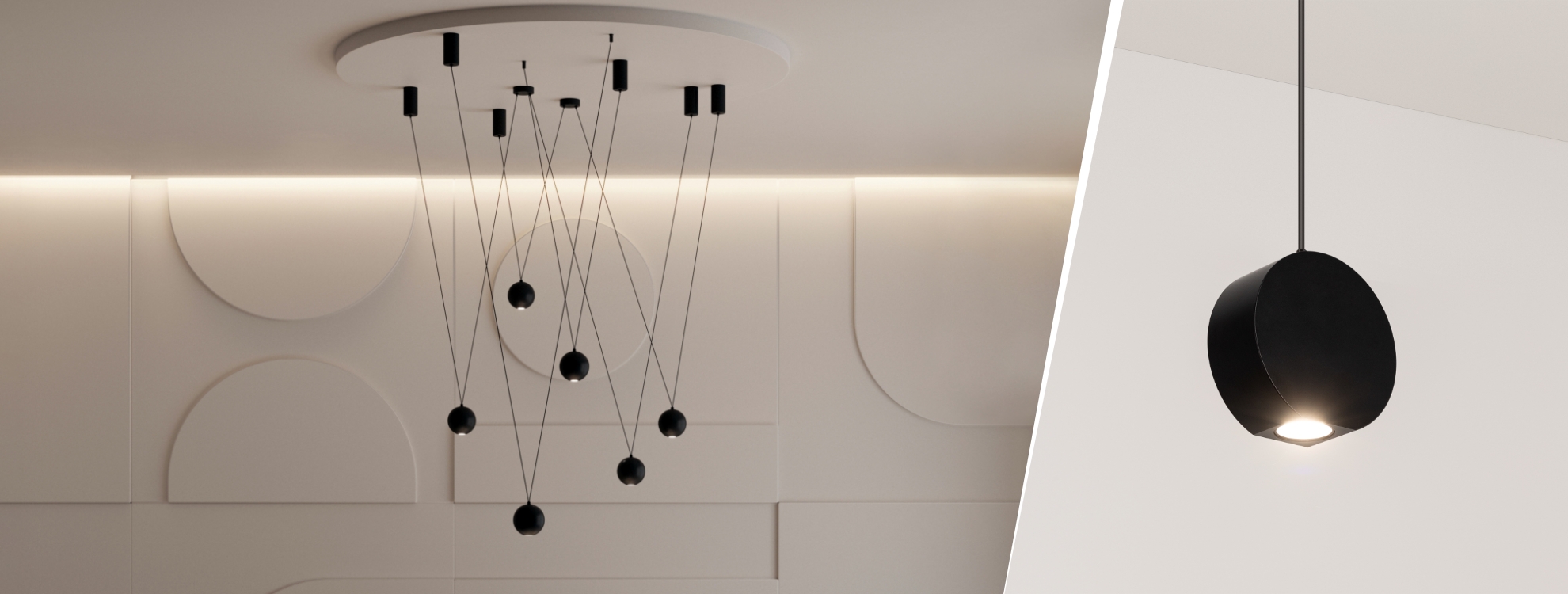 Токопроводящий подвес длиной 1500 мм можно регулировать и создавать оригинальные многоуровневые композиции. Для создания одной подвесной композиции будет достаточно трех разных по форме светильников.