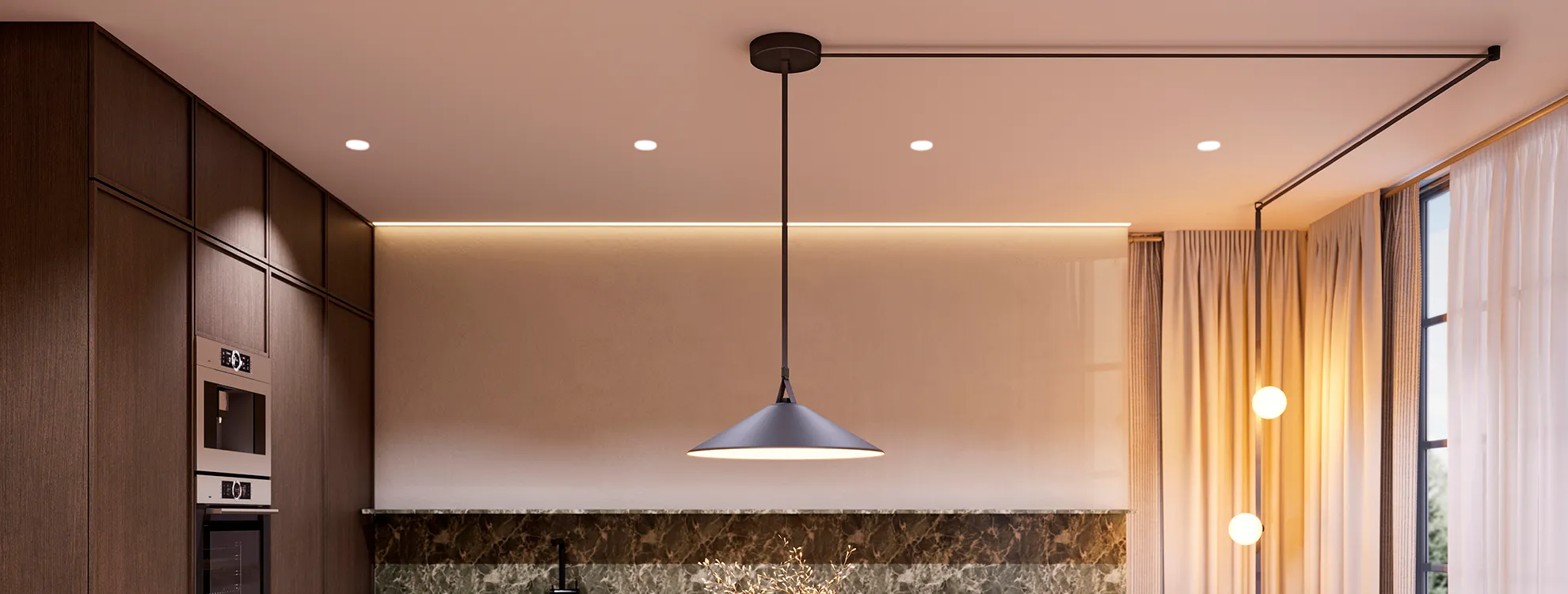 Интерьерный светильник INBELT WOK монтируется на гибкий трек-ремень системы INBELT и подходит для жилых, коммерческих и офисных помещений.