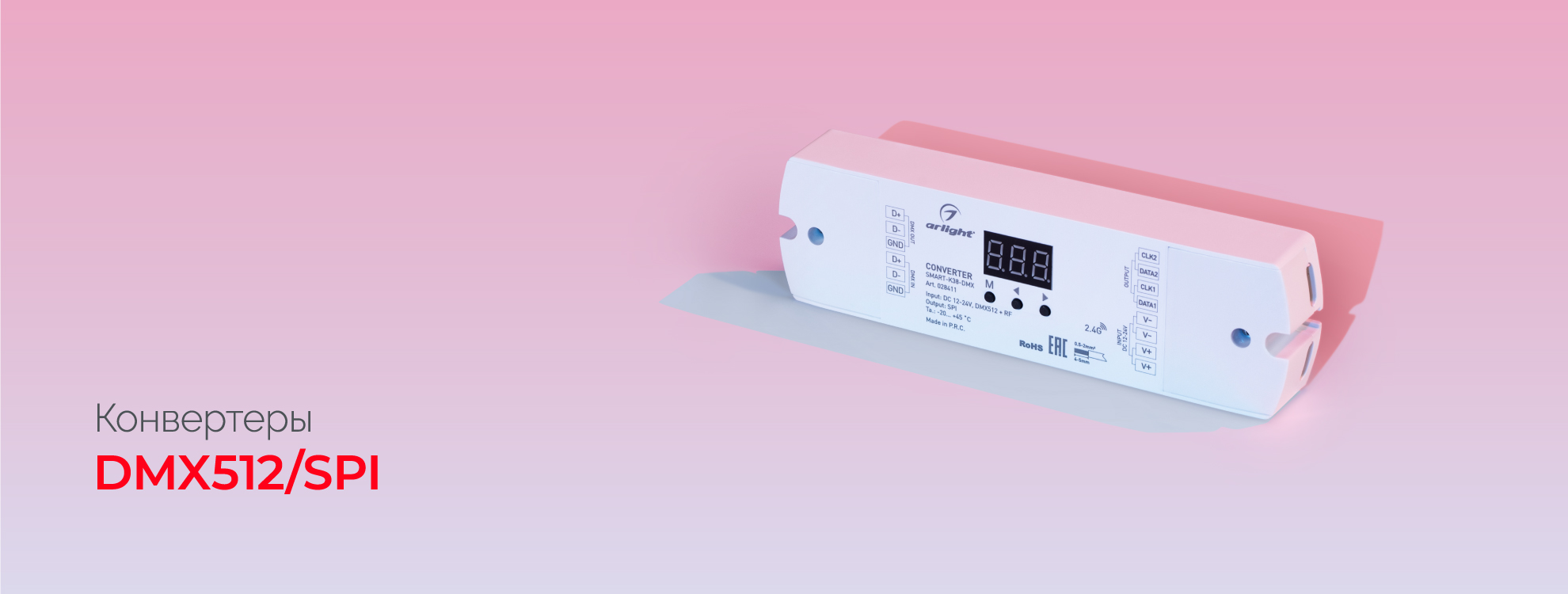Конвертеры цифрового сигнала DMX512 в сигнал SPI предназначены для управления светодиодной лентой «бегущий огонь», светодиодными флеш-модулями, прожекторами и другими устройствами SPI посредством протокола DMX512.
