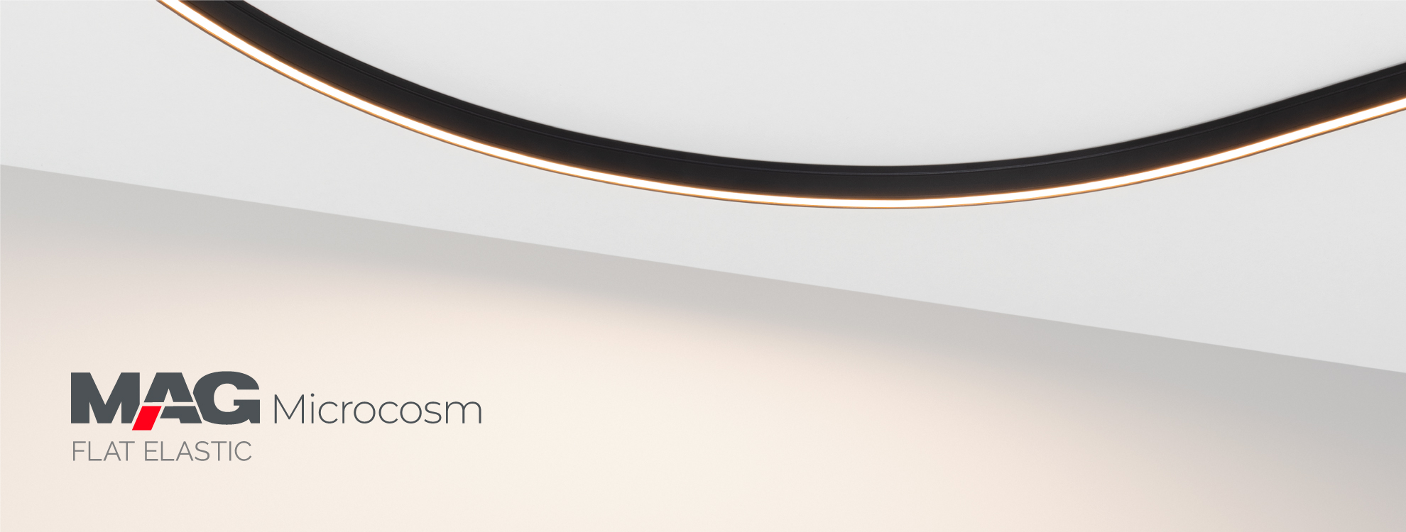 Гибкий светильник в силиконовом корпусе FLAT ELASTIC для линейных и радиальных магнитных треков MAG MICROCOSM предназначен для создания декоративного, акцентного и основного освещения, а также инсталляций различных форм. Корпус светильника полностью утапливается в трек, образуя лаконичную линию света.