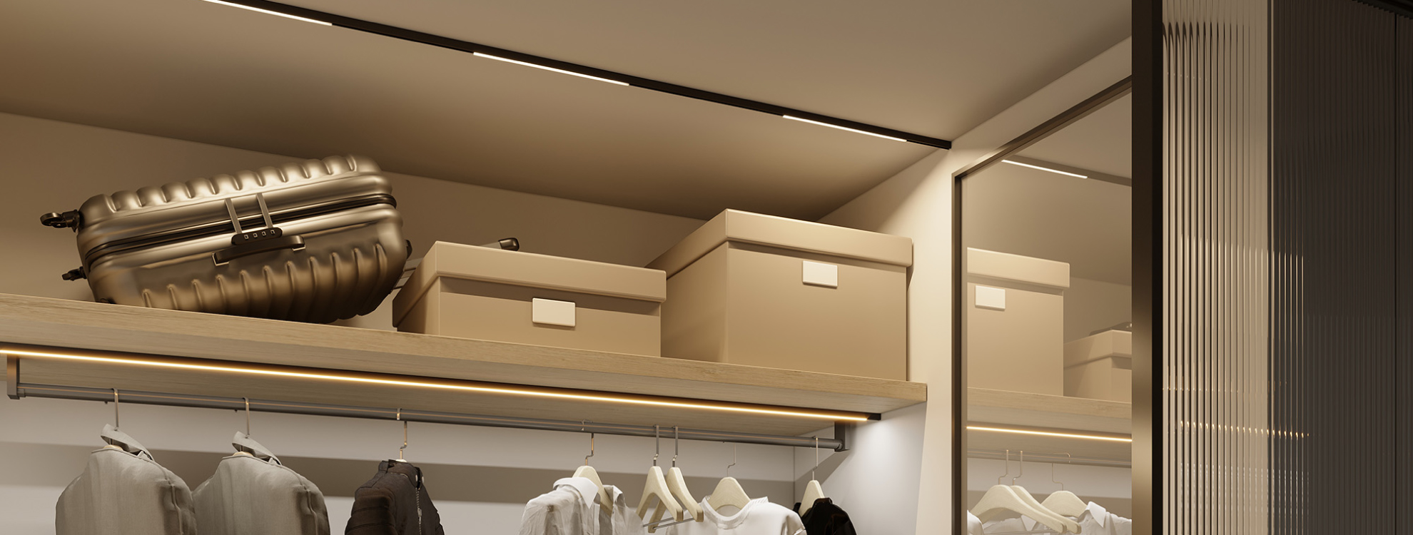Безопасное напряжение питания 24 В позволяет перемещать светильники вдоль шинопровода и устанавливать их в пределах досягаемости.