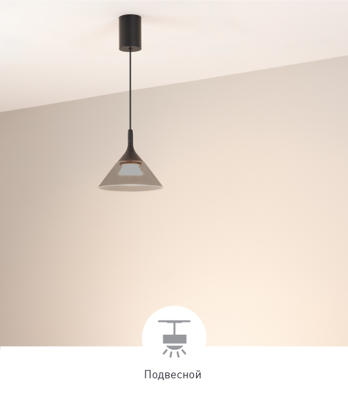 Стильный дизайн Стеклянный конусообразный плафон дымчатого цвета добавит в интерьер элегантность.