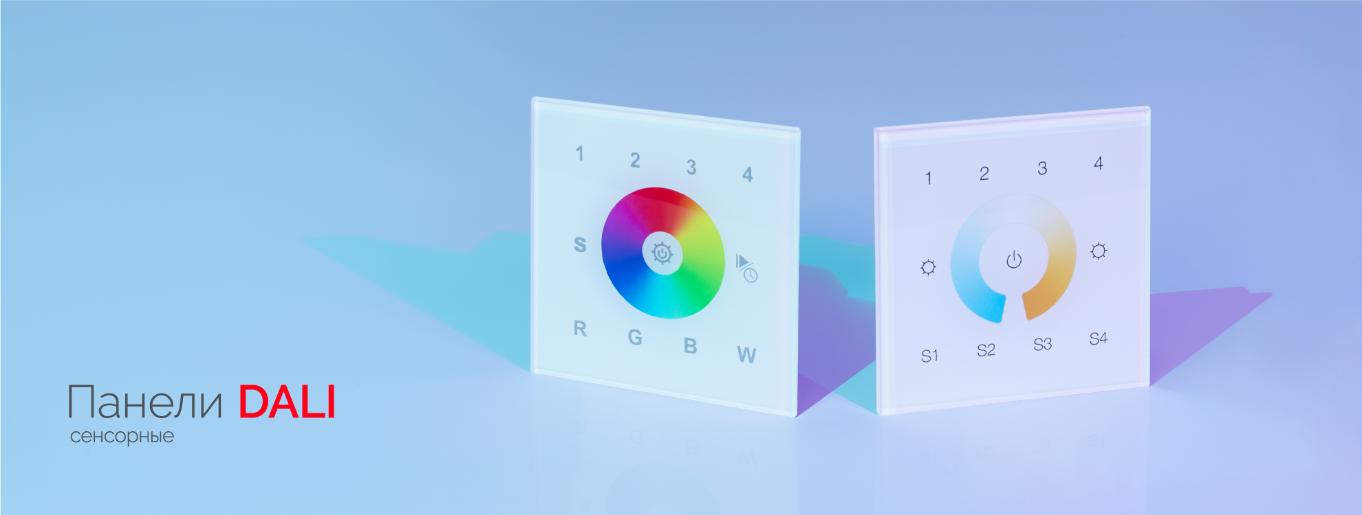 Сенсорные панели предназначены для управления светодиодными лентами, светильниками и другими источниками света, использующими стандартный цифровой интерфейс DALI. Позволяют включать и выключать свет, регулировать яркость и цвет свечения, а также управлять световыми сценами в зависимости от модели.
