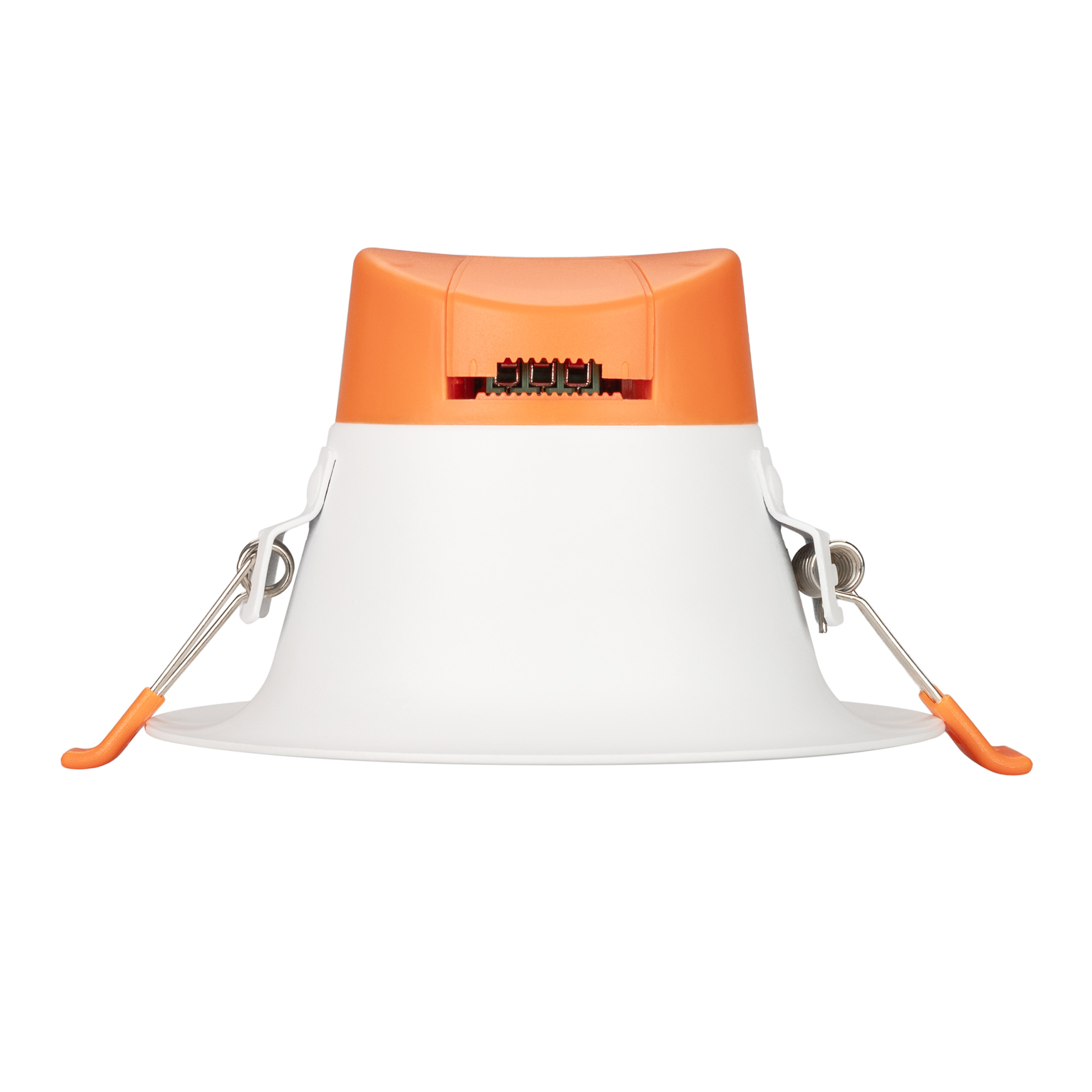 Встраиваемый светильник даунлайт с интегрированным в корпус драйвером. Мощность 10 Вт, св. поток 840 лм, 84 лм/Вт, дневной 4000 K, CRI>90, угол 100°, напряжение питания 230 В. Белый круглый корпус из алюминия, степень защиты IP20. Размер: диаметр 115 мм, высота 70 мм. Монтаж встраиваемый, установочное отверстие: диаметр 100 мм. Пульсация <2%.