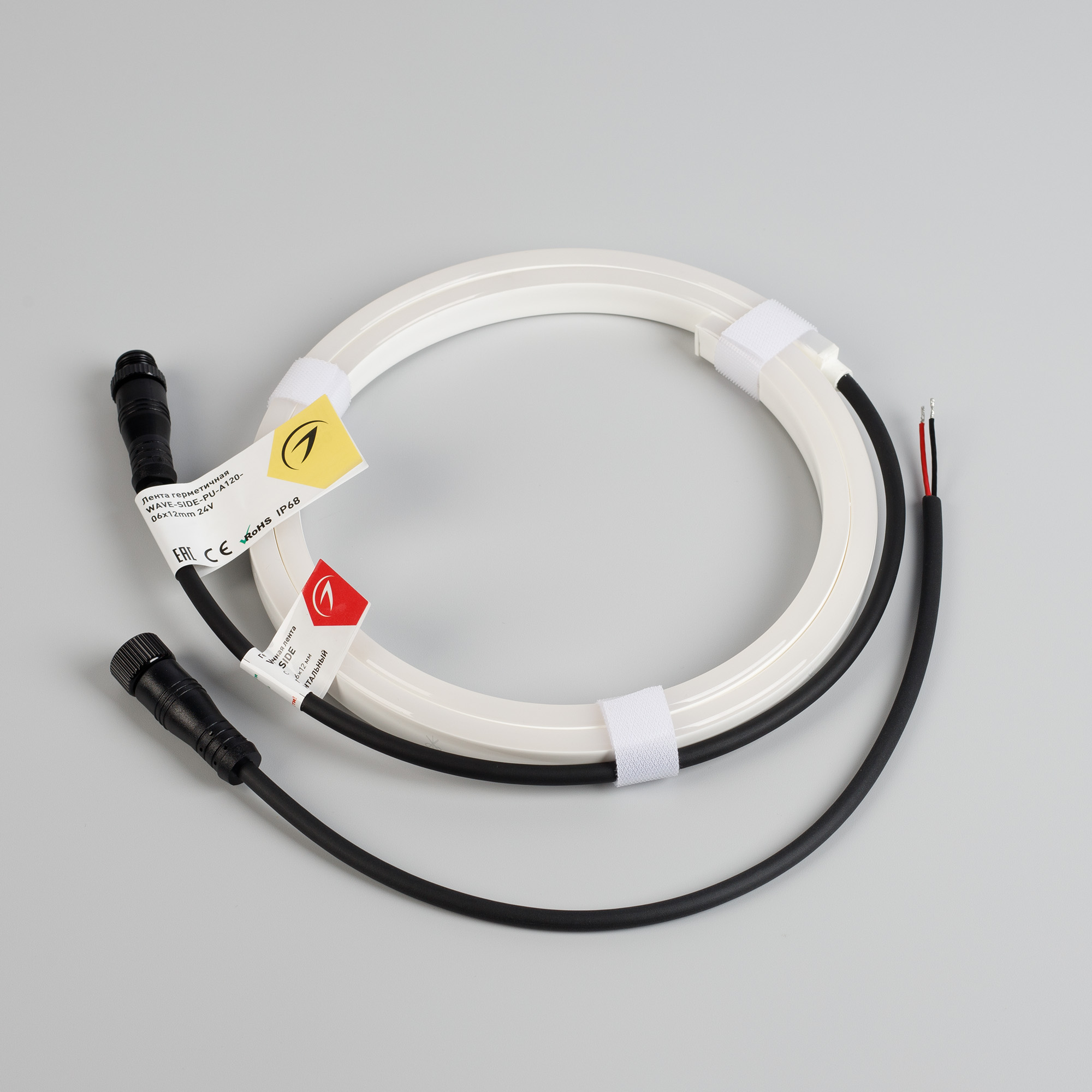 Гибкая герметичная лента WAVE имеет сечение 06×15 мм и оснащена 120 светодиодами SMD2835 на метр. Теплый белый цвет свечения (3000К) и световой поток в 398 лм/м позволят добиться комфортного освещения, а высокий индекс цветопередачи (CRI>90) позволяет создать отличную различимость цветовых оттенков. Лента потребляет всего 8 Вт/м и работает от 24 V. Она обладает классом пылевлагозащиты IP68 и полиуретановую оболочку, что позволяет использовать ленту в т.ч. при воздействии морской и хлорированной воды, и имеет минимальный радиус изгиба 150 мм (сам изгиб горизонтальный/SIDE). Лента не подлежит резке. Угол излучения - 125°. Габариты ленты составляют 1000×06×12 мм. Кабель питания длиной 2000 мм выводится с двух сторон вдоль линии сечения ленты. Катушка содержит 1 м ленты. Цена указана за 1 м ленты. Гарантия на ленту составляет 3 года. Список совместимых аксессуаров, с помощью которых можно создавать уникальные декоративные композиции, находится в разделе "Совместимые".