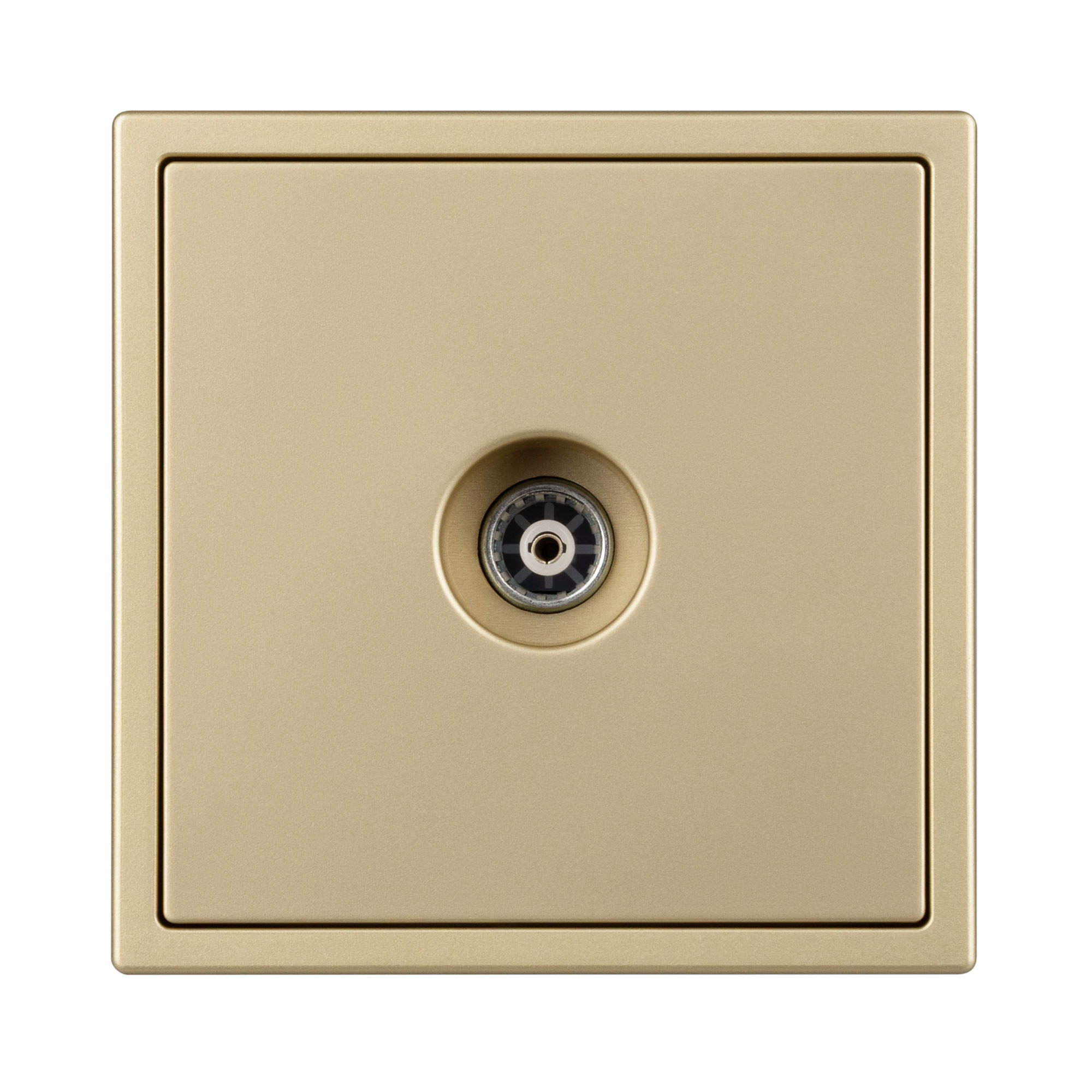 Механизм ТВ-розетки совместим с рамками серии NOBE, создает утонченный минималистичный вид. Скрытый тип монтажа позволяет гармонично встроить в интерьер любого современного дизайн-проекта. Видимая часть выполнена из высококачественного пластика цвета золотой песок и имеет Soft-Touch покрытие, что придает изделию приятные тактильные ощущения и стильный внешний вид.