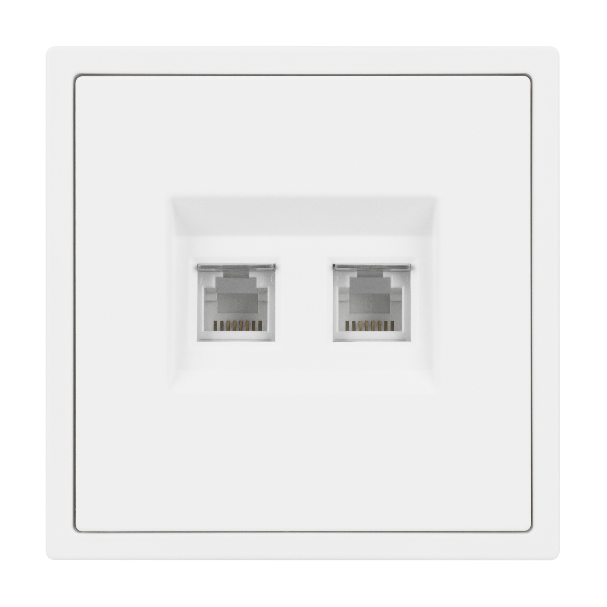Механизм сдвоенной телефонной розетки совместим с рамками серии NOBE, создает утонченный минималистичный вид. Скрытый тип монтажа позволяет гармонично встроить в интерьер любого современного дизайн-проекта. Видимая часть механизма выполнена из высококачественного пластика цвета белый кварц и имеет Soft-Touch покрытие, что придает изделию приятные тактильные ощущения и стильный внешний вид.
