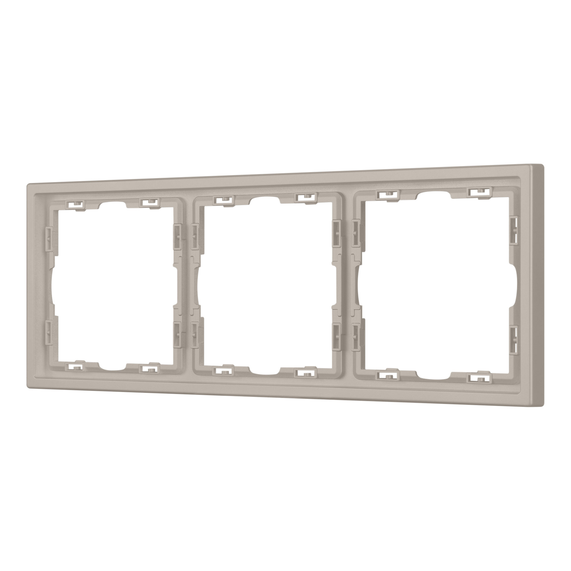 Корпус рамки выполнен в цвете кашемир и имеет покрытие Soft-Touch, что придает изделию приятные тактильные свойства. Толщина корпуса составляет 8,5 мм, что позволяет эффективно интегрировать рамку в интерьерные решения любого уровня сложности.