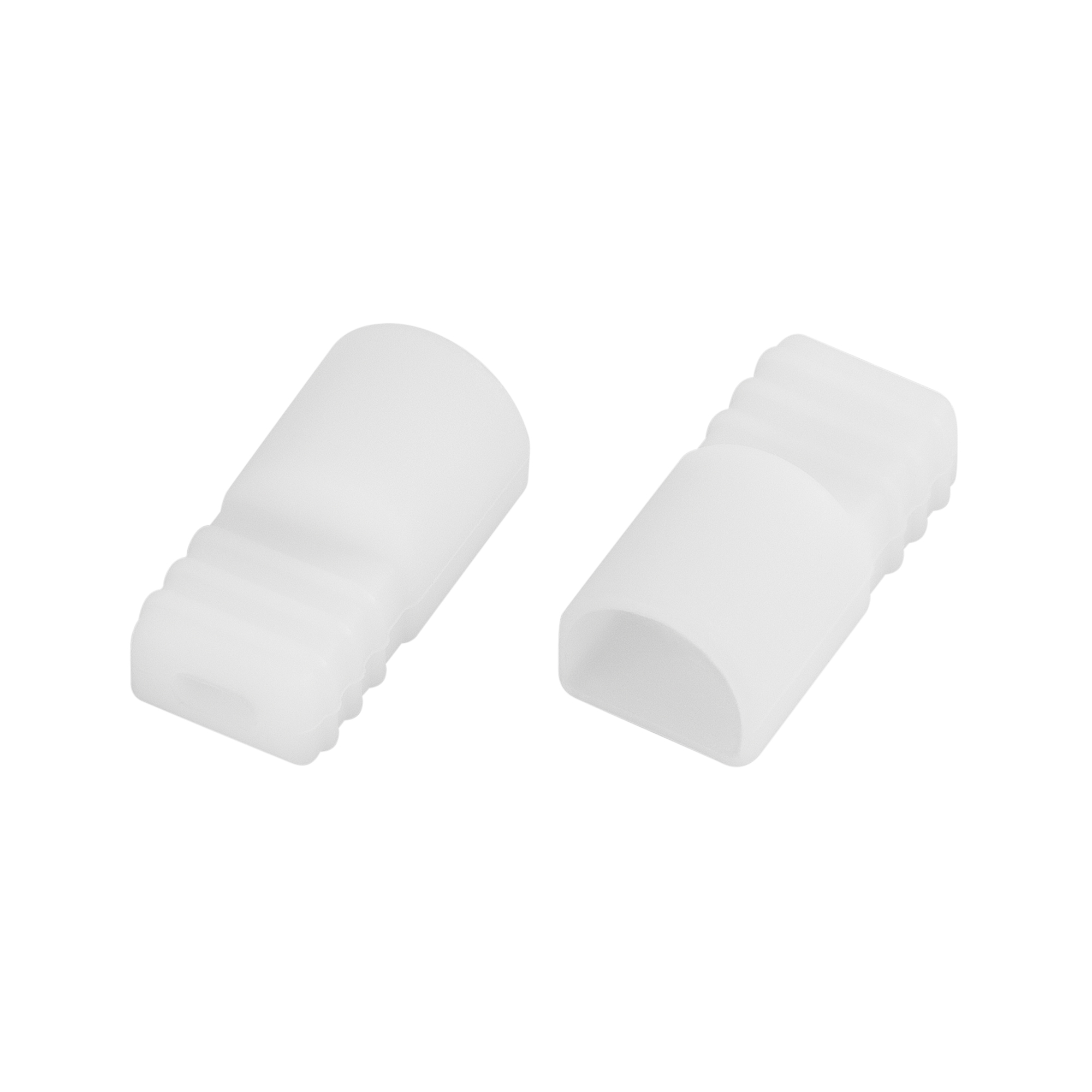 Силиконовая заглушка с выводом под провод для герметичных лент COB шириной 8 мм, белого матового цвета. Материал - силикон. Используется для герметизации светодиодных лент после разреза, для установки использовать нейтральный силиконовый герметик. Пакет 10 шт. Цена за 1 шт.