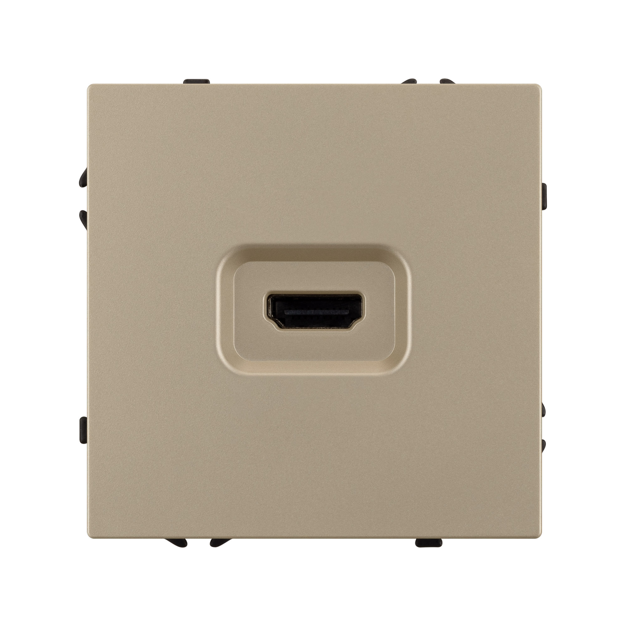 Механизм HDMI розетки на 1 пост. Цвет - золотой песок, с Soft-Touch покрытием. Без декоративной рамки. Уровень пылевлагозащиты IP20. Тип подключаемого разъема - HDMI (Female). Розетка устанавливается в стандартный подрозетник круглого сечения диаметром 60мм. Габаритные размеры: длина 71 мм, ширина 71 мм, высота 42 мм. Гарантийный срок 10 лет.