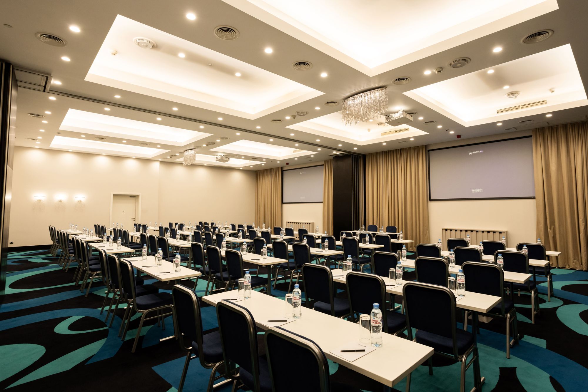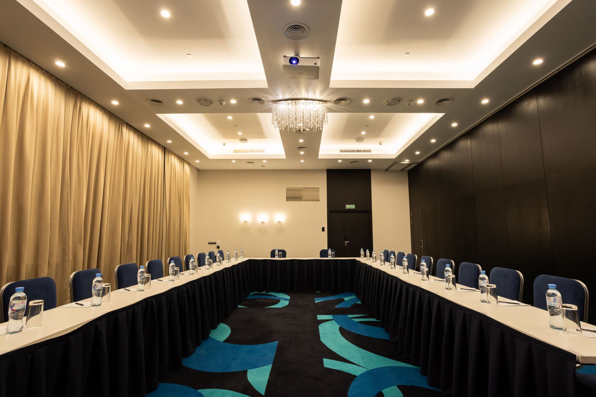 Освещение конференц-зала проектируется с учетом многофункциональности пространства: в нем проводят презентации, видеоконференции, совещания и торжественные мероприятия. Применение световых сценариев — один из ключевых пунктов для создания такого многообразия.