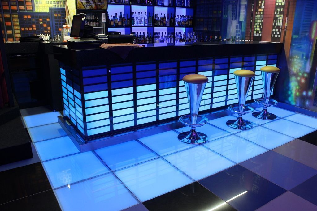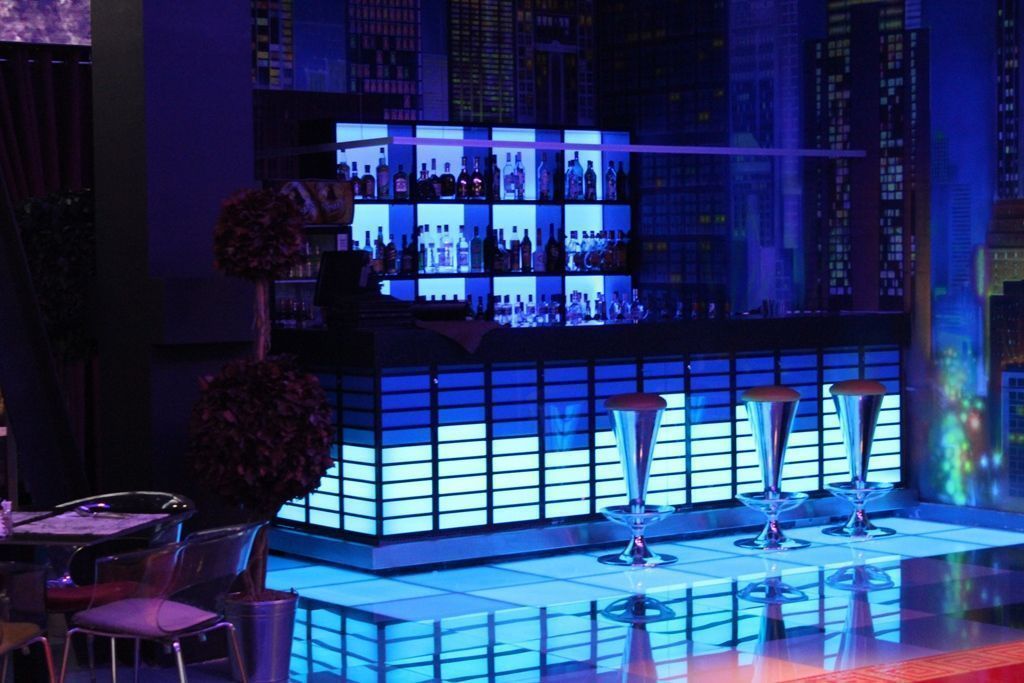 Для оформления ночного клуба применялось различное светодиодное оборудование торговой марки arlight®. Барная стойка была оформлена в виде эквалайзера с движущимися индикаторами. Для реализации данной задумки использовалась светодиодная лента arlight® и светопропускающий пластик. Для освещения рабочей зоны за барной стойкой был изготовлен светодиодный светильник на основе подвесного алюминиевого профиля arlight® и светодиодной ленты arlight® в нём.