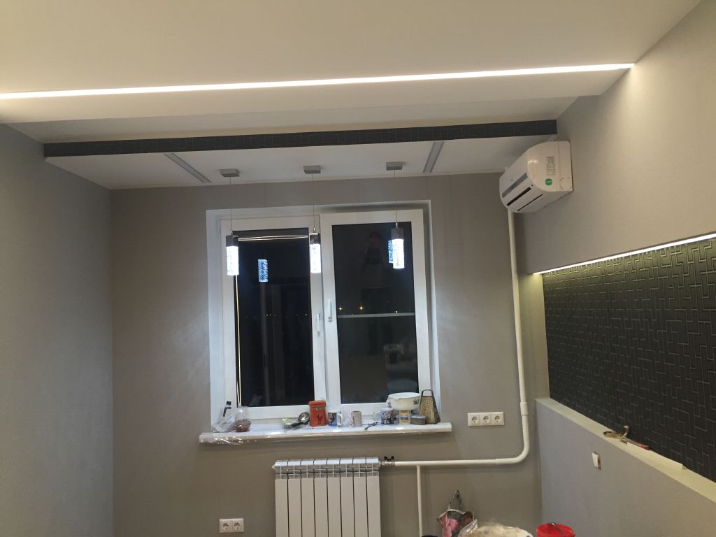 В данной квартире был выполнен проект по созданию линий света и организации подсветки потолков.